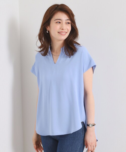 【デザイン】 接触冷感機能のさらりタッチブラウス。 リラックス感あるシルエットで夏でも快適。 自然な抜け感とバックコンシャスなデザインが可愛いブラウス。 ゆとりのあるシルエットでリラックス感のある着心地。 落ち感のある素材なので、ボリュームのあるギャザーデザインも上品見えに仕上げてくれます。 フロントは顔周りすっきり見えのスキッパーデザイン。 袖口はカフスを付けることで、自然に腕周りをカバーしてくれるデザインに。 【素材】 さらりとした肌触りととろみ感が特徴の素材です。 ※照明の関係により、実際よりも色味が違って見える場合があります。また、パソコン・スマートフォンなどの環境により、若干製品と画像のカラーが異なる場合もございます。 ---------------------------------------- ★お気に入り登録がおすすめ★ ▽気になる商品はハートマークをクリック! ・再入荷やセールの通知をお知らせ ・お気に入り一覧からいつでもチェック ▽ブランドのお気に入り登録も! ・新商品やお得な情報をいち早くお知らせ ---------------------------------------- モデル情報:身長165cm B82 W60 H88 着用サイズ:00(フリーサイズ) 店舗へのお問い合わせ商品番号:P93-52542 ●製品寸法: 00(フリーサイズ):着丈69cm B106cm 裄丈35cm 備考: