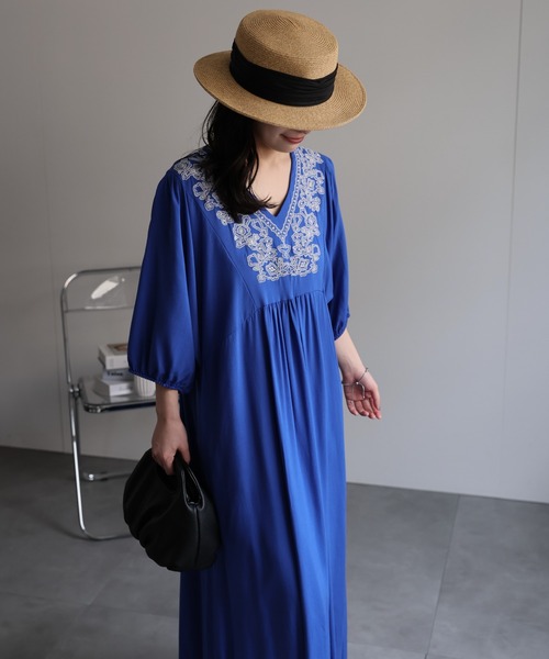 ap retro 【刺繍フレアワンピース】 繊細な刺繍が大人ガーリーな涼しげワンピース 《styling》 一枚で主役級のコットンライクワンピースです。 サンダルと合わせてリゾート感満載もよし、 スニーカーと合わせてリラクシーなお出かけコーデにもぴったり。 小物の合わせ方次第で印象が変わるワンピースです♪ 《detail》 Vネックでデコルテを綺麗に見せてくれます。 切替位置が高めなので縦ラインが強調され、足長効果抜群。 二の腕をしっかりカバーするふっくら袖で年代問わず着用いただけます◎ ------------------- 裏地 : なし 光沢感 : なし 透け感 : ややあり 伸縮性 : なし ポケット : あり 生地の厚さ : やや薄手 ------------------- 刺繍ワンピース / カラーワンピース / 夏ワンピ / 大人カジュアル / ワンマイル 【Information】 ※撮影時のライティングやご覧になっているモニター・PC環境により、 実際の商品と色味が異なって見えることがございます。予めご了承くださいませ。 ※予約商品は追加生産のため、商品によっては多少色味が異なる場合もございます。 ※モデル着用画像はサンプル品のため、実際の商品とは仕様・加工・サイズが多少異なる場合がございます。 ※着用、お取り扱いの際は、商品に付いている品質表示とアテンションタグを必ずご確認ください。 ※ご注文いただいた予約商品のお届け時期の確認は、注文履歴ページより行えます。 ※他のキャンペーンにより、期間中に価格が変動する場合があります。 ※セールは予告なく終了させていただく場合もあります。 【お買い物をよりお楽しみいただく為に】 <Instagram> apretro_official 新作情報やルックを配信中 ★商品のお気に入り登録★ ♡のクリックをおすすめします。 完売カラーの再入荷や、ラスト1点の通知、 セールの際の通知を受ける事ができます。 ★ブランドのお気に入り登録 ★ 新商品情報やお得な情報をいち早く通知されます。 ぜひ、登録お願いします♪
