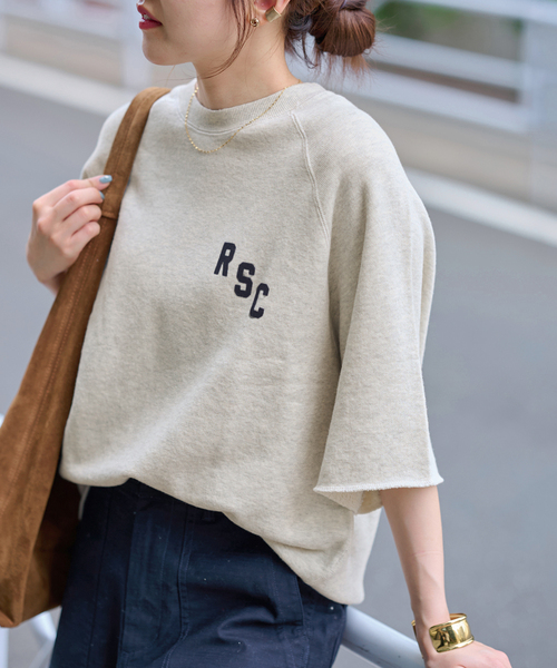 【2025AW】JOURNAL STANDARD relume◆これからの時期に重宝するハーフスリーブスウェット軽くて膨らみある度甘裏毛を生地から別注したハーフスリーブスウェット。ウォッシュアウトしたヴィンテージ感のある風合いで胸のフロッキープリントがポイント◎カラーは今年のムードに合わせて定番カラーと秋らしいボルドーの3色展開です。※ロゴについてRSC:架空のクラブチームとしてRELUME SPORTS CLUBの略※取り扱いについては、商品についている品質表示でご確認ください。 **********************透け感:なし裏地:なし(裏毛)伸縮性:ややあり光沢感:なし生地の厚さ:普通**********************【スタッフ着用コメント】 《スタッフM》 身長:158cm/体型:細身/普段サイズ:S/着用サイズ:FREEサイズ感:ゆったりとしたシルエットで、袖は肘までしっかり隠れます。着丈はヒップが隠れる長さがあり、小柄な私でもバランス良く着られました。素材感:柔らかく肌触りの良いコットン素材です。スウェットですがゴワつきがなく、落ち感があります。着心地: 軽くてラクな着心地です。柔らかく締め付け感がないので、リラックスして着られます。**********************※照明の関係により、実際よりも色味が違って見える場合があります。またパソコン・スマートフォンなどの環境により、若干製品と画像のカラーが異なる場合もございます。※商品の色味は、商品アップ画像をご参照ください。本体:洗濯機洗い(弱)