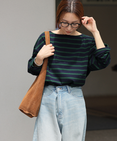 【2025AW】JOURNAL STANDARD relume◆ロングシーズン大活躍!定番ボーダープルオーバー肌離れ良くキレイ目なMVSコットンを使用し、生地から完全オリジナルで作成したバスクボーダープルオーバーです。カジュアルからきれいめまで着回せて、1枚着としてもジャケットのインナーやシャツをインしたりと、着回し力あるベーシックボーダーです。袖を太めにしたオーバーサイズデザインは、ロールアップしてニュアンスを出せるのがポイント。今年ムード感の高いランダムボーダーやカラー展開は新鮮です。※ボーダーのカラーについてナチュラル(016):生成×ブラック 2本ラインネイビー(040):ネイビー×グリーンネイビー A(041):ネイビー×ボルドー 2本ラインボルドー(066):ボルドー×ネイビー※取り扱いについては、商品についている品質表示でご確認ください。 **********************透け感:なし裏地:なし伸縮性:ややあり光沢感:なし生地の厚さ:普通**********************【スタッフ着用コメント】 《スタッフN》 身長:157cm/体型:普通/普段サイズ:S,M/着用サイズ:FREEサイズ感:ゆったり大きめのサイズ感。首元はボートネックですっきりと女性らしさもあります。素材感:綿100%でロングシーズン着られ、またベーシックだからこそ長く着られます。着心地:一枚ではもちろんですが、シャツやカットソーとレイヤードするのもいいですね。※あくまでも個人の感想です**********************※照明の関係により、実際よりも色味が違って見える場合があります。またパソコン・スマートフォンなどの環境により、若干製品と画像のカラーが異なる場合もございます。※商品の色味は、商品アップ画像をご参照ください。本体:洗濯機洗い(弱)