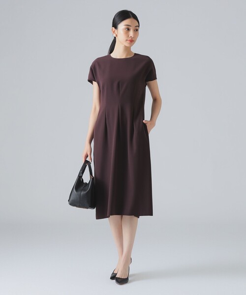 大人のリッチエレガント■デザイン立体的なフォルムで女性らしさと気品を纏えるワンピース。前後に入った細やかな3本タックと、柔らかなカーブを描くキャップスリーブが、優美なシルエットを演出します。■コーディネート1枚で洗練スタイルが完成。アクセサリーやバッグを引き立て、フォーマルなシーンにも活躍します。■ディテール両サイドにポケットが施されています。■サイズウエストラインを程良くシェイプし、メリハリのあるシルエットに。長すぎない丈感ですっきりと着こなせます。■素材ポリエステル素材にハード加工を施し、形を美しく保ちながらも軽やかな着心地を実現。シワになりにくいのも嬉しいポイントです。■ケア方法ドライクリーニング可(詳細は商品についている洗濯表示タグをご覧ください。)Model:H171 B77 W59 H87 Size:38**********************生地の厚さ:普通透け感:なし伸縮性:ややあり光沢感:ややあり裏地:あり**********************※光の当たり具合やパソコンなどの閲覧環境によって、実際の色味と異なって見える場合がございます。予めご了承ください。※商品の色味は商品単体で撮影した画像をご参照ください。