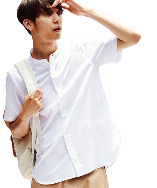 バンドカラーを採用したシャツ。ハリとコシのある生地感で程よく品のある表情に仕上げました。バンドカラーを採用することで、首元をスッキリと見せてくれるひと品。着まわしやすい単色仕様に加えて、爽やかなピンストライプ柄もご用意しました。一枚で着用頂くのは勿論、インナーとしてもお使い頂けるひと品。今季はハットやスニーカーなど、小物で遊びを効かせたコーディネートもオススメです。