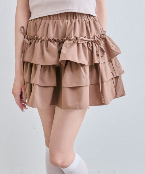 360度どこから見てもかわいいスカート■デザイン・サイドにあしらわれたリボンが、コーデに甘さをプラスしてくれるデザイン。・ボリュームたっぷりなティアードシルエットで、細見えが叶います。・ウエストは総ゴム仕様でラクに履けて、ストレスフリーな着心地。・インパン仕様なのでミニ丈でも安心して着用していただけます。■カラー・オフ/ブラウン/ブラックの3色展開■スタイリング・シンプルなTシャツと合わせて、甘めのカジュアルコーデがおすすめ。・リボンやレースが付いたトップスでとことんガーリーに着てもかわいいです。・足元はハイソックスにローファーや厚底サンダルが相性◎-----------------------------裏地:あり光沢感:なし透け感:なし伸縮性:なし手洗い:可能タンブラー乾燥:不可アイロン:110℃まで-----------------------------model:165cm※着用、お取り扱いの際は、商品についている品質表示とアテンションタグを必ずご確認下さい。※ご覧のモニター環境や撮影環境により実際の商品と多少色味が異なって見える場合がございます。ご理解の程よろしくお願いいたします。■お気に入り登録のおすすめ【気になるアイテムを登録】ハートをクリックしてお気に入りに登録すると完売カラーの再入荷やラスト1点の通知、セールの通知を受けとることができます。【ブランドを登録】新商品や再入荷、セール通知など、いち早くブランドの情報を受けとることができます。