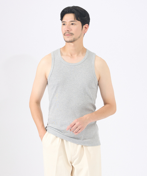 キックバックの効いたインナーに活躍するタンク 【素材】 程良い厚みのテレコ生地は肌触りが柔らかでストレッチ性が高く 綺麗なラインが出るのが特徴です。 【デザイン】 レイヤードスタイルが楽しめるタンクトップが 着心地抜群のテレコ素材で登場。 タイトシルエットながらストレッチ性に優れ、ストレスなく着れる一枚です。 【コーディネート】 シャツやTシャツのインナーに重宝する一枚。 AH ABAHOUSEならではのリーズナブルな価格で 色違いでの購入もおすすめです。 ホワイト モデル:H178 B82 W76 H88 着用サイズ:48 グレー モデル:H178 B82 W76 H88 着用サイズ:48 ブラック モデル:H178 B82 W76 H88 着用サイズ:48 【AH ABAHOUSE】 手ごろな価格でトレンドアイテムを発信するABAHOUSE GRAYのインライン。モードスタイルをベースに遊び心と自由な発想を取り入れ、”今”の気分を味わいながら日々のファッションを楽しみ、日常に溶け込むスタイルを提案いたします。