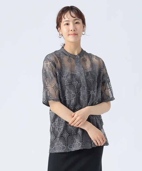 洗練されたレースで魅せる■デザインナチュラルなムードとヴィンテージライクな表情を併せ持つブラウス。繊細な幾何学模様が特徴のケミカルレースが、上品で女性らしい印象を与えます。ドロップショルダーでゆとりのあるシルエットは、リラックス感がありながらも洗練されたバランスを演出。抜け感をプラスし、大人のカジュアルスタイルにぴったりです。■コーディネートデイリーには、デニムを合わせたカジュアルダウンがおすすめ。Tシャツの上に羽織れば、こなれ感のあるレイヤードスタイルが完成します。キャミソールやタンクトップとのレイヤードで、レースの透け感と肌見せを存分に楽しむのも◎。同系色のインナーを選ぶと肌なじみが良く、上品な印象に仕上がります。夏の羽織りとしても活躍し、着こなしの幅を広げます。■サイズゆとりのある身幅とアームホール、そしてドロップショルダーデザインにより、重ね着しやすいサイズ感に。肘あたりまである袖丈は、気になる二の腕もカバーし、安心して着用いただけます。■素材柔らかく軽やかな素材感は、夏でも快適に着用いただけます。通気性も良く、これからの季節にぴったりの素材です。■ケア方法手洗い可(詳細は商品についている洗濯表示タグをご覧ください。)※光の当たり具合やパソコンなどの閲覧環境によって実際の色味と異なって見える場合がございます。予めご了承ください。※商品の色味は商品単体で撮影した画像をご参照ください。