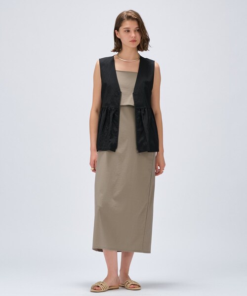 リラクシーかつ華やかな雰囲気も兼ね備えたキャミワンピース 【デザイン】 ・胸元のフリルディテールが女性らしい華やかさをプラス。 ・身体のラインを拾いすぎず、程よくリラクシーなシルエットが魅力的。 ・長さ調節が可能な華奢な肩紐。 ・スリット入りで、動きやすさと快適な着心地を兼ね備えた一着。 【素材】 ・レーヨン混素材で、滑らかで上品な質感と柔らかさを両立。 【着こなしポイント】 ・インナー次第でオールシーズン着回し可能。 ・ロンTならカジュアルに、ブラウスでフェミニンな着こなしもおすすめ。 モデル身長:176cm ーーーーーーーーーーーーーーーーーー 気になるアイテムはお気に入り登録がおすすめ! お気に入り登録で、再入荷通知やお値下げ情報をお知らせ。 お得な情報をいち早くお届けいたします! アイテムページにある、ハートマークをクリックして追加できます。 ーーーーーーーーーーーーーーーーーー ※照明の関係により、実際よりも色味が違って見える場合があります。また、パソコン・スマートフォンなどの環境により、若干製品と画像のカラーが異なる場合もございます。 店舗へのお問い合わせ商品番号:R91-52009 ●製品寸法: 02(M):総丈122cm 着丈101cm B89cm 裾幅56cm 備考: