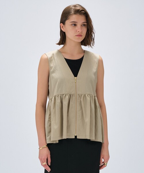 いつものコーディネートにプラスワンでこなれ見えするペプラムジレ 【デザイン】 ・ウエストにギャザーを効かせたペプラムシルエット。 ・カットソーやブラウスを重ねやすいように、アームホールは広めの仕上がり。 ・ふんわり広がるシルエットでお腹周りをカバーするのも嬉しいポイント。 【素材】 ・レーヨン混の滑らかな肌触りが特徴。 ・軽量でさらっと着られる軽い素材。 【着こなしポイント】 ・セットアップでの着用で洗練された大人のスタイルに。 ・一枚ではもちろん、Tシャツやシアートップスとのレイヤードにも。スタイリングの幅が広がる一着。 モデル身長:176cm ーーーーーーーーーーーーーーーーーー 気になるアイテムはお気に入り登録がおすすめ! お気に入り登録で、再入荷通知やお値下げ情報をお知らせ。 お得な情報をいち早くお届けいたします! アイテムページにある、ハートマークをクリックして追加できます。 ーーーーーーーーーーーーーーーーーー ※照明の関係により、実際よりも色味が違って見える場合があります。また、パソコン・スマートフォンなどの環境により、若干製品と画像のカラーが異なる場合もございます。 店舗へのお問い合わせ商品番号:R91-82036 ●製品寸法: 02(M):着丈60cm B92cm 肩幅38cm W87cm 備考: