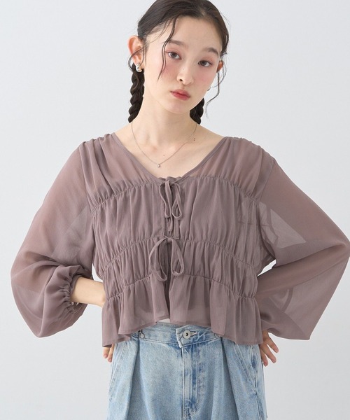 シアー素材のシャーリングブラウスとキャミソールを合わせたアンサンブル。 ふんわりエアリーな素材感とギャザーを施した立体的なシルエットが女性らしいデザインです。 軽やかな着心地のトップスは夏の羽織アイテムにも最適。 セットアレンジはもちろん、それぞれ単品使いもお楽しみいただけます。 透け感[あり] 生地の厚さ[薄手] 光沢感[なし] 伸縮性[なし] 裏地[なし] ポケット[なし] ※モデル着用画像は光の当たり具合で色味が違って見える場合がございます。商品の色味は物撮りの画像をご参照ください。 ● earth music&ecology ● (アースミュージック&エコロジー) 「いいことある服。」 たかが服。されど服。波風の多い日々のなかでもほほえんで前を向くあなたを、つつんで一緒に歩きたい。 いいことあるかも。そんな期待までまとえる服をあなたに。 earth music&ecologyは、毎日を頑張る女性たちをちょっと前向きにするブランドです。 ▼ 商品のお気に入り登録がおすすめです ▼ 商品ページ内の「♡」ハートマークをクリック。完売時の再入荷や、最後の1点の通知、コーディネート画像がアップされたとき、お得なお値下げの際の通知を受ける事ができます。 【お知らせ】ページでも通知が確認できます。