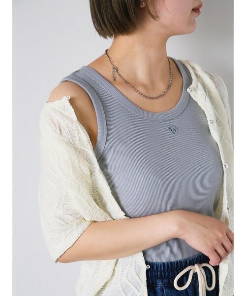 ハートのカットワークがワンポイントで施されたタンクトップ。鎖骨も映える広めに開いたラウンドネックもヘルシーな印象を演出してくれます。シンプルに着るのはもちろん、旬のシアーアイテムとレイヤードしたりと着こなしの幅も広がる1枚です。※商品画像は、撮影環境やお客様のご利用のPC・スマートフォンのモニター環境などにより実物と色味に差異がある場合がございます。★《お気に入り登録》でお得な情報をGET★① 商品ページ内のハートマークをクリック!② 以下通知が受け取れます!「再入荷」「ラスト1点」「特別セール」etc..\ブランド、ショップのお気に入りも是非!/
