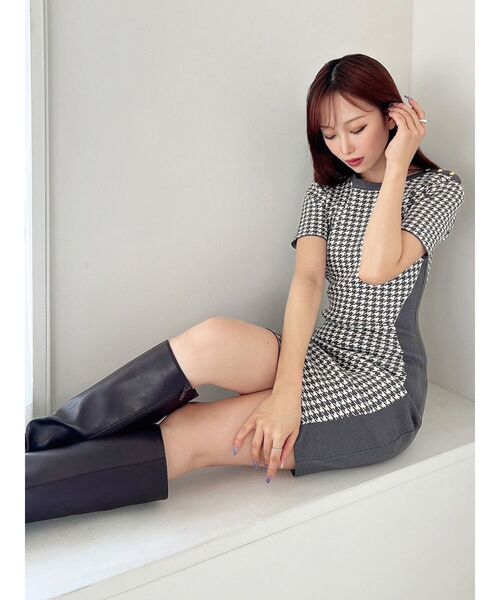 シーズンムードを高める千鳥チェックのニットミニワンピース ▽デザイン▽ 上品な千鳥チェックにハートのボタンがキャッチーなニットワンピース。 サイドウエストを無地にすることでウエストラインを細く見せ、 メリハリのあるスタイルに仕上げました。 タイトなシルエットで甘さを抑え、スタイルアップできるアイテムです。 ▽カラー▽ 黒・チャコールグレー・ピンクの3色展開。 ▽スタイリング▽ 1枚でコーデが決まる万能アイテム! 千鳥チェックが秋らしさもプラスしつつ、晩夏におすすめの1枚。 タイトなサイズ感なので薄手の羽織りも合わせやすく、 長く使える1枚です。 【ロング丈はコチラ】 152540303301:ハウンドトゥースバイカラーニットワンピース