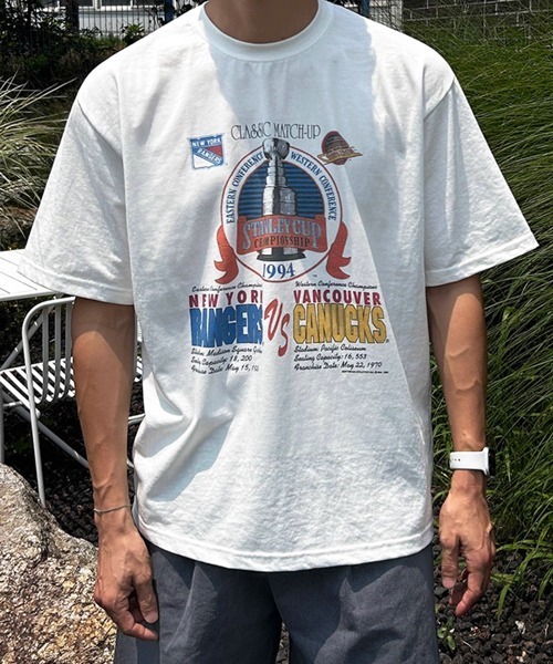 【NOWLE】ヴィンテージライク アメリカン クラシック プリント 半袖 Tシャツ 時を超えて愛される一枚。 ヴィンテージライク アメリカン クラシック プリント 半袖 Tシャツ 古き良きアメリカの息吹を感じさせる、ヴィンテージライクなプリントTシャツがお目見えしました。 まるで時を経たようなグラフィックと風合いが特徴で、一枚で主役になる存在感と、着るほどに味が出る表情が魅力です。 このTシャツに大胆にあしらわれたクラシックなグラフィックプリントは、当時のデッドストック品を見つけたかのような雰囲気を醸し出しています。 アメリカンスポーツの歴史や文化を感じさせるデザインは、着こなしに深みと遊び心をプラスし、シンプルな日常のスタイルを格上げしてくれるでしょう。 素材には肌に優しいコットンを100%使用しており、吸湿性と通気性に大変優れているため、快適な着心地が一日中続きます。 丈夫ながらもソフトな風合いで、洗うほどに体に馴染み、よりヴィンテージ感のある表情へと変化していきます。 程よいゆとりのあるベーシックなシルエットは、体型を選ばずに誰でも着こなしやすいのが特徴です。 様々なボトムスとの相性も抜群で、デニムやチノパンと合わせて王道のアメカジスタイルに。 カーゴパンツやショートパンツでストリート感を出すもよし、ジャケットやシャツのインナーとして、プリントを覗かせるのもおすすめです。 春夏シーズンのデイリーユースにぴったりの、着回し力の高い一枚です。 【NOWLE(ノウル)】 now+owlの造語で幸福の鳥owl(フクロウ)をモチーフにしたブランド名 "今"と"幸福"を大切にという想いを込めて立ち上げたセレクトブランドです。 【NOWLEの新着情報について】 ▼商品のお気に入り登録 完売カラーの再入荷通知や、ラスト1点の通知、セールの通知も受け取ることができます。 ▼ブランドのお気に入り登録 新商品や再入荷等、いち早く"NOWLE"のお得な情報を受け取ることができます。 ※こちらの商品の画像はサンプルを使用しているため、一部製品と仕様が異なる場合がございます。 ご覧のモニター環境や撮影環境により実際の商品と多少色味が異なって見える場合がございます。 この点をご了承の上、お買い求めください。ご理解の程よろしくお願いいたします。 ヴィンテージライクTシャツ, アメリカンクラシック, プリントTシャツ, 半袖Tシャツ, コットンTシャツ, 綿100%, グラフィックTシャツ, レトロTシャツ, スポーツTシャツ, NHL, ストリートファッション, アメカジ, カジュアル, 春夏, ユニセックス, メンズファッション, レディースファッション, デイリーユース, ルーズフィット, オーバーサイズ, ロゴTシャツ, クルーネック, 白Tシャツ, 古着風, ヘビーオンスTシャツ, アメカジスタイル, ロックTシャツ, バンドTシャツ, レタリングTシャツ, 部屋着, ルームウェア CZ_0002