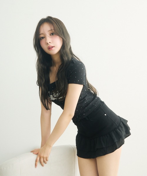 TITTY&CO.2025SS collection ♡全面ラインストーンで後ろ姿まで抜かりない♡ [detail] 胸元にあしらわれたラインストーンロゴが目を引く華やかなデザインです。 フィット感のあるシルエットでボディラインをきれいに見せてくれます。スクエアネックがデコルテを美しく演出し、女性らしさを引き立てます。 --------------------------裏地:なし 透け感:ややあり伸縮性:なし生地の厚さ:普通-------------------------- [styling] ミニスカートと合わせて、Y2K風のガーリーなスタイリングが楽しめます。ダメージデニムと合わせれば、カジュアルながらもフェミニンな印象に仕上がります。フレアスカートとパンプスでまとめると、デートにもぴったりな上品コーデになります。 ※照明の関係により、実際よりも色味が違って見える場合がございます。 また、パソコン・スマートフォンなどの環境により、若干製品と画像のカラーが異なる場合もございます。 予めご了承くださいませ。 ※画像の商品はサンプルです。 実際の商品と仕様・加工・サイズが若干異なる場合がございます。 また、生産時期により、サイズやカラーに誤差が生じる場合がございます。 予めご了承くださいませ。 【商品のお気に入り登録】 完売カラーの再入荷や、セール通知などお得な情報を受け取ることができます。 ぜひご登録下さい♪ 【ブランドのお気に入り登録】 新作入荷や再入荷、セールやクーポンイベントなど注目のブランド情報を受け取ることができます。 ぜひご登録ください!!