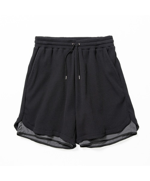Solotexワッフルを使用したイージーショーツ。裏地付きの二重構造になっており、内側には透湿撥水性の高いポリエステルタフタを使用。ノンラミネート加工により汗、水分を内部から外へ素早く放出し、ムレを抑え快適に保つ。表側にはテイジンの開発したSolotexを使用した変形ワッフル素材を採用。コイル形状でストレッチ性、キックバック性に優れ、吸水速乾性も併せ持つ。【Information】・ブランドのお気に入り登録完売中のカラーやサイズの再入荷、ラスト1点の通知をお届けします。・商品の「お気に入り」登録新作の公開や再入荷など、最新の情報を受け取ることができます。ぜひ、ご活用ください。───────────────────────meanswhileMore than just a garment, clothes are a tool.Ancillary to daily activity, the purpose of design is to enhance the functionality of these tools.As these tools transform and adapt with wear, they in turn personalize each individual's style.It is this style that is the essence of fashion.日常着である以上、服は衣装ではなく道具である。人の活動に付随するのが道具であり、デザインとはその道具がより機能するためにある。道具が日常に馴染むたび、使い手のスタイルが築かれる。そのスタイルこそが、ファッションとしてあるべきものである。───────────────────────