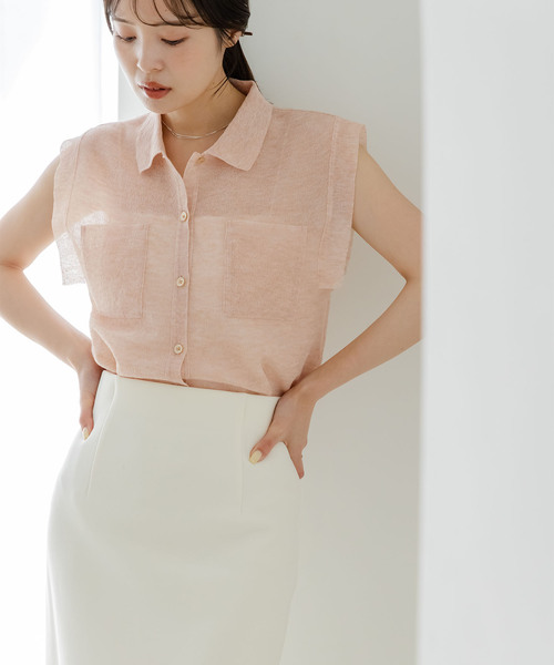 ◆昨年大ヒット!"スポンジシアーニットプルオーバー"と同素材を使ったノースリーブバージョンが登場 襟と胸ポケットが特徴的な、シャツデザインの前開きニット。 透け感のあるスポンディッシュで軽やかな風合いで、見た目も着心地も清涼感たっぷり。 アームホールに生地を少しプラスすることで、二の腕の細見え効果を実現。 サイドスリット入りの前後差をつけたヘムラインなので、アウトしたときもバランスを取りやすいうえにお洒落性もグッと高まります。 ********************** 透け感:あり 裏地:なし 伸縮性:あり 光沢感:なし 生地の厚さ:薄手 ********************** ※取り扱いについては、商品についている品質表示でご確認ください。 ※こちらの商品は、NOBLEでの取り扱いになります。 直接店舗へお問い合わせの際はNOBLE店舗へお願い致します。 ※照明の関係により、実際よりも色味が違って見える場合があります。 またパソコン・スマートフォンなどの環境により、若干製品と画像のカラーが異なる場合もございます。 ※商品の色味は、商品アップ画像をご参照ください。 グレーB着用スタッフ身長:160cm 着用サイズ:フリー ベージュ着用スタッフ身長:155cm 着用サイズ:フリー グリーンB着用スタッフ身長:164cm 着用サイズ:フリー モデルサイズ:身長:163cm 着用サイズ:フリー 本体:手洗い可能