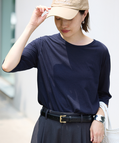 洗濯機使用可能/5分袖/イージーケア【2025AW】SLOBE IENA大好評につき《ブラウン》《ネイビー》の追加生産が決定しました!加えて新色で《カーキ》《ブラウンベース》をご用意致しました! ※旧品番23070912316030、24070912300020、24070912321030の追加商品です。※若干の仕様変更がある場合もございます。POINT・綿ナイロンのハイゲージで編み上げたシアー素材を使ったTシャツ。・シアーの透け感と肘にかかる絶妙な五分袖が特徴。【素材の特徴】通気性や伸縮性があり機能的な1枚で、これからの時期にぴったりです。洗濯機使用可能で扱いやすく、気兼ねなく着ていただけます。【デザイン】5分袖丈で季節はじめなど気温が安定しずらい時期から使いやすいアイテム。インアウトどちらでも、着用しやすくバランスが取りやすい着丈です。【コーディネート】デニムなどのパンツ合わせや女性らしいフレアスカート、キャミワンピースのレイヤードスタイルなど幅広いボトムと相性抜群です。※こちらの商品はカラーによってアテンションが異なります。色あせ:ブラウン、ネイビー、カーキのみ**********************透け感:あり裏地:なし伸縮性:あり光沢感:なし生地の厚さ:薄手**********************【スタッフ着用コメント】《スタッフ名:Yuka》年齢:20代後半/身長:172cm/体型:細身/普段サイズ:M~L/着用サイズ:フリーサイズ感:腕周りが少しすっきりした印象です。ウエストが隠れる着丈。インでもアウトでもバランスよく着られそうです。素材感:ドライタッチで汗ばむ季節でも快適に過ごせそうです。着心地:軽い生地で肌にまとわりつかず、ストレスなく着られそうです。**********************※取り扱いについては、商品についている品質表示でご確認ください。こちらの商品は、SLOBE IENAでの取り扱いになります。直接店舗へお問い合わせの際はSLOBE IENA店舗へお願い致します。※照明の関係により、実際よりも色味が違って見える場合があります。またパソコン・スマートフォンなどの環境により、若干製品と画像のカラーが異なる場合もございます。予めご了承ください。※商品の色味は、商品アップ画像をご参照ください。本体:洗濯機洗い(弱)
