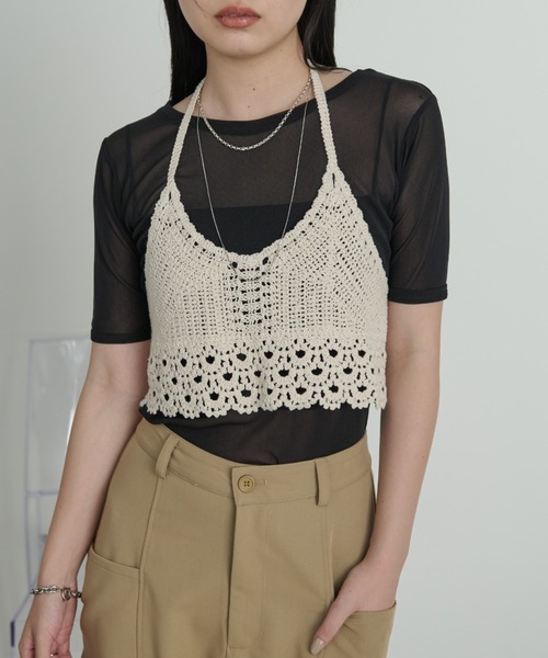 シーズンムードを高めてくれる ナチュラルテイストのクロシェビスチェ ■デザイン 繊細な編地とショート丈のバランスが 着るだけでこなれた印象に。 首元とウエスト部分はリボンで結ぶと、バックスタイルもポイントに。 着回し力がありながらもコーディネートの主役になる存在感も◎ ワードローブにあると重宝するアイテムです。 ■素材感 さらっとしたコットン素材で夏場も快適にレイヤードが楽しめます。 ■スタイリング Tシャツやシアートップスにレイヤードするだけで 一気にトレンドライクな着こなしに。 様々なアイテムと相性の良い1枚です。 ----------------------- 透け感/あり 光沢感/なし 伸縮性/なし 裏 地/なし 厚 み/なし ----------------------- ※自宅洗濯可能(単独手洗い推奨) ※濃色品は多少色落ちしますので、洗濯の際は淡色のものと一緒にしないよう、ご注意ください。 ※濃色品は、摩擦などにより他の衣類に色が移ることがありますのでご注意ください。 ※詳しいお手入れ方法は商品タグをご参照ください。 【SNS掲載情報】 @auntmaries.official 公式Instagramアカウントにて新作情報をはじめ 多彩なコンテンツを掲載しております。ぜひご覧くださいませ。 【商品のお気に入り登録】 完売カラーの再入荷通知やラスト1点の通知 プライスダウンの通知も受け取ることができます。 ぜひご登録ください◎ 【ブランドのお気に入り登録】 新商品や再入荷など、 ブランドの情報をいち早くお知らせします! ぜひご登録ください◎ ※ご注意※ ・屋外の光や照明の当たり具合で、実際の商品の色味と カラー別画像の色味に若干の違いが発生する場合がございます。 ・詳細画像と併せてご確認の上、ご注文いただきますようお願い致します。