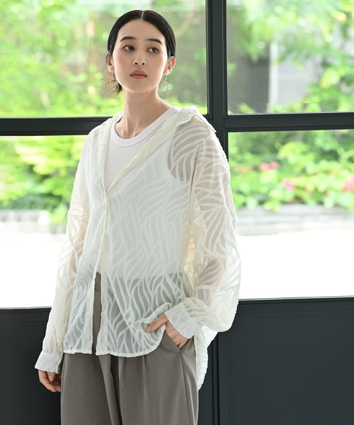 =風をまとう、涼やかシルエット= 夏にも最適な、軽やかシアージャガードシャツ 「華奢じゃない=着こなせない」なんて思い込まなくていい。 BLK001は、肩幅がある方や骨格しっかりさんでも、 自分らしくおしゃれを楽しめる服をお届けしています。 このトップスも、そんな「無理せず着られて、きちんと素敵」を叶える一枚となっております。 ほんのり透ける質感と、動きのある表面感。 汗ばむ季節にまといたくなる、風通しの良さと上品さを兼ね備えた「大人のためのシアートップス」です。 ジャガード特有の表情がスタイルに奥行きを与え、ラフなのにどこか洗練された印象に。 さっと羽織っても、ボタンを閉じて主役にしてもOKです。 「隠したいけど、重く見せたくない」そんなお悩みに応える一枚です。 【こんな方に向いている商品です】 ・身長160cm~ ・バストに厚みがある ・肩幅が広い ・ウエストラインが気になる ・華奢じゃない方 ・暑がりだけど羽織が欲しい 【商品について】 ・柔らかく肌を透かす、シアージャガード素材感のチュニック丈シャツ ・チュニック丈は腰まですっぽりと覆ってくれるので、体型カバーもスタイルアップも叶える絶妙な長さ ・フォルムはほどよいゆとりを持たせた肩落ちオーバーサイズ。締め付け感なく、抜け感のあるシルエットに ・凹凸感のあるジャガード素材が、透け感に陰影を生み、しわも目立ちにくいため持ち運びにも便利 ・ドライタッチでさらっと快適。真夏の羽織りとしても重宝します ・日除けや冷房対策、肌見せを抑えたい時にもぴったり ・こういう“便利なのに探すとない”アイテムは、見つけた今が買い時です! 【素材について】 ポリエステル素材のジャガード生地を使用。 わずかな凹凸が表情を加え、のっぺり見えない上品な風合いに。 ハリ感がありながら落ち感もあり、シルエットを美しくキープします。 肌あたりは滑らかで、長時間の着用でもストレスフリーです。 【オススメのシーン】 デイリー/通勤・オフィス/食事会/女子会/旅行/公園などにも 【商品の詳細】 着用時期:通年 サイズ感:程よくゆとりのあるサイズ感 丈感:ヒップが隠れるチュニック丈 シルエット:ボックス型 タック:なし スリット:なし 厚み:薄地 肌触り:ドライ感のある滑らかな風合い 光沢感:ややあり しわ:なりにくい 伸縮性:なし ボタン:あり(前開き) 裏地:なし 手洗い:可 アイロン:低温可 【お色について】 アイボリー:わずかにクリーム色を含んだ、やさしく上品な薄アイボリー。