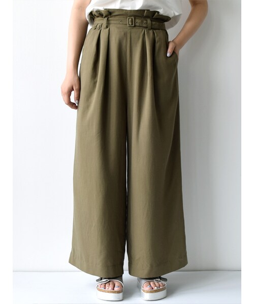タック入りのすっきりとした印象の9分丈ワイドパンツ。テンセル混なので上品な光沢があるのが特徴です。シンプルなトップスをINするだけでサマになるパンツです。取り外し可能のベルトが付きます。総裏付きになります。※同生地でトップスver.もあります。セットアップコーデもオススメです。