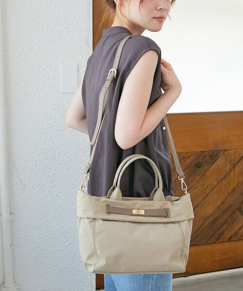 シンプルながらも、高見えするベルトデザインがアクセントとなったトートバッグ。 程よいサイズ感で内ポケットも充実しており、スマホや小物の整理もラクラクです◎ 軽量&丈夫なナイロン素材で、毎日の通勤やお出かけにもぴったりなアイテム。