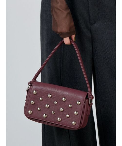 スタッズ使いがポイントのコンパクトバッグ持つだけでコーデのアクセントにも■アイテム2サイズのスタッズを施したトレンド感あるバッグ。ワンハンドル仕様も今季らしいデザインになっています。どんなスタイリングにも馴染む万能な1点です。ハンドルを使わず底をもってクラッチバッグを持つような持ち方もトレンド感がありオススメです。【知って得する便利機能◎ 】■商品のお気に入り登録再入荷時、ラスト1点の時にお知らせします。■ブランドのお気に入り登録新商品やお得な情報など、いち早くお得な情報をゲット!ぜひご活用ください!※着用画像はフラッシュの加減で実際の製品と色味等が異なる場合がございますので、生地のズームアップ画像をご確認ください。※ご利用の端末画面の設定により実際の商品と色味が異なる場合がございます。