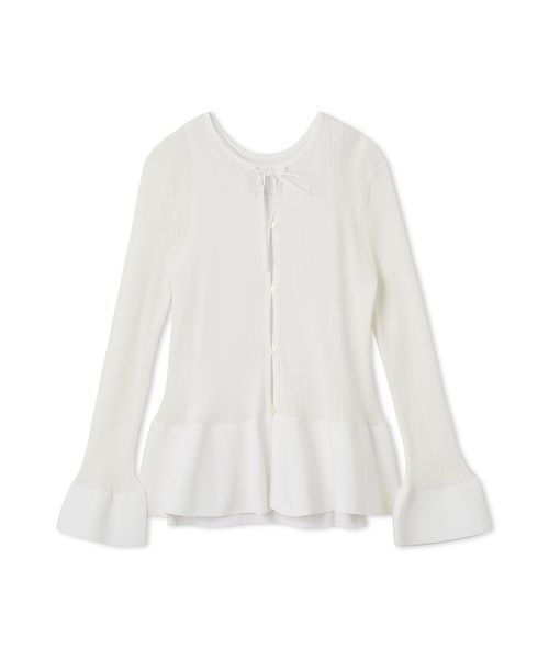 【着映えするペプラムニットと、インにぴったりのアメスリ型タンクトップがセットに】【Design/Styling】フロントのリボンとペプラムディテールがかわいいニットのプルオーバーと、アメスリ型タンクトップの2枚がセットに。リボンつきのニットは、柔らかくシアーな糸使いで心地よい肌当たりのリブ素材。お好みと気分で着回せる、前後2WAYのデザインです。また、ふんわりと広がるペプラム部分は編み方を変えていて、構築的なシルエット。袖口も優雅に膨らんでいて、着映えするアイテム。セットになったタンクトップは、トレンドのアメスリデザイン。フライスリブカットソーでしっかりと編み立てられています。セットで着るのはもちろん、それぞれ単品でも使えて、さまざまな着こなしに応用できます。【Fabric】綿混の糸をさまざまな編み方で仕上げた、テクニックが詰まったセットです。カラーは3色をご用意。クリーンな<WHT>、華のある<BLU>、モード感あふれる<BLK>で展開しています。※照明の関係により、実際よりも色味が違って見える場合があります。またパソコン・スマートフォンなどの環境により、若干製品と画像のカラーが異なる場合もございます。予めご了承ください。商品の色味は、商品単品画像をご参照下さい。 ※商品画像はサンプルのため、色味やサイズ等の仕様に変更がある場合がございますので、予めご了承ください。