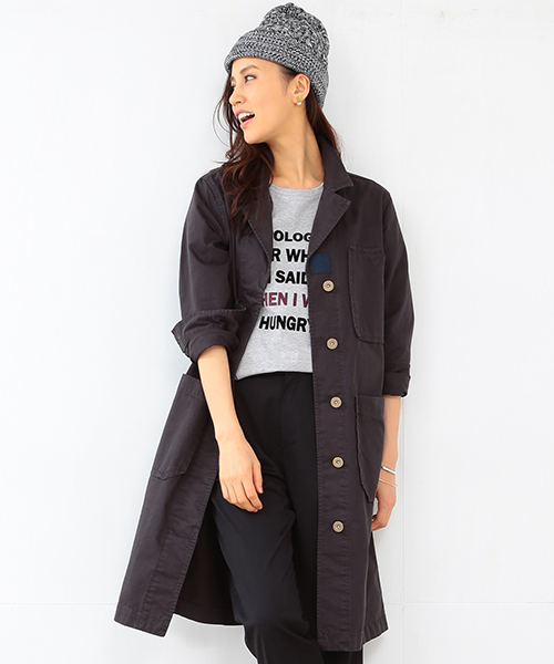 秋冬トレンド共演!ミリタリー×ショップコート。 じわじわと人気が高まってきているショップコートをミリタリーテイストで表現しました! ワーク感のある大ポケットのディテールや加工感にとことんこだわり、雰囲気ある仕上がりになっています。 寒くなったらインナーダウンをインしたり、ストールをプラスしてこなれ度はさらにアップ!襟を軽く立てたり袖をラフに捲し上げたり、ぜひオリジナルの着崩し感でトレンドスタイルをお楽しみください。 ※画像の商品はサンプルです。