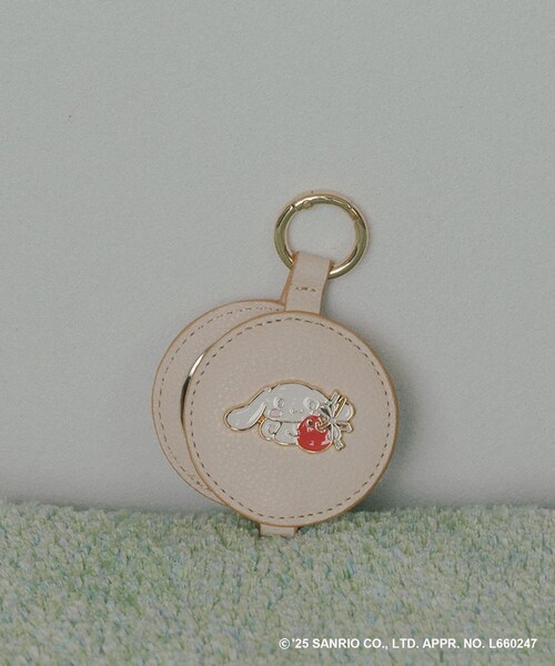 ◆2025春夏◆ <POINT> ・さりげないシナモロールが大人カワイイ!チャームとして使えるミラーです。 ・丸カラビナ仕様で、バッグなどにも手軽に取り付けてお使いいただけます。 ・スナップで開閉するため、ミラーに傷がつきにくいです。 【デザイン・シルエット】 大きなチェリーをリボンでおめかししたシナモロールをフロントに配置。 キュートなシナモロールと一緒にお出かけしたくなるコンパクトミラーです。 【素材】 傷が目立ちにくいシュリンク調の合皮。 【カラー】 シナモロールの金具と相性のよいライトベージュとサックス。 【シナモロール】VIS別注モデル ぬいぐるみチャーム(品番:BVZ75100) アソートマルチチャーム(品番:BVZ75110) マルチスマホスショルダー・ストラップ(品番:BVZ75130) マーブルバンス(品番:BVZ75140) フェイスポーチ(品番:BVI75100) ソフトポーチ(品番:BVI75110) ミラーチャーム(品番:BVI75200) フェイスミラー(品番:BVI75120) ハートカットバッグミディアム(品番:BVX75100) ハートカットバッグラージ(品番:BVX75110) ハートカットバッグスモール(品番:BVX75120) ダブルフェイスハートカットバッグミニ(品番:BVX75130) 【シナモロール】 遠いお空の雲の上で生まれた、白いこいぬの男のコ。 ある日、空からフワフワ飛んできたところを、「カフェ・シナモン」のお姉さんに見つけられ、そのままいっしょに住むことに。シッポがまるでシナモンロールのようにくるくる巻いているので、「シナモン」という名前をつけてもらう。 2002年にデビュー。幅広い世代から人気を集めています。 ※画像の商品はサンプルです。 実際の商品と仕様、加工、サイズが若干異なる場合がございます。