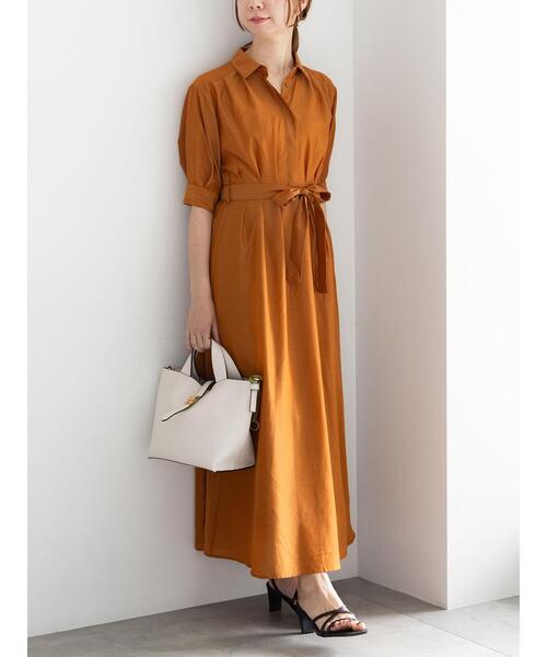 さらりとした質感のスパンローンで仕立てられたシャツワンピース。タックの生み出す立体感のあるシルエットもポイント。ウエストリボンが愛らしくメリハリ感をプラスしてくれます。シンプルなデザインでシーンを問わずに愛用でき、オンオフ幅広く活躍してくれるアイテムです。※商品画像は、撮影環境やお客様のご利用のPC・スマートフォンのモニター環境などにより実物と色味に差異がある場合がございます。【その他採寸】F ウエスト:[後ゴム仕様]64cm 全長:[ベルト]172cm 幅:[ベルト]4cm