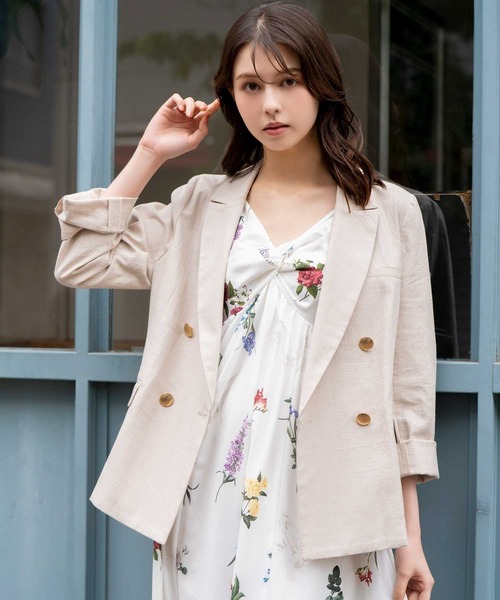 大人気の「ゴールドボタンダブルジャケット」のシルエットやディテールはそのままに、このシーズンらしいリネンライク素材で軽やかに仕上げたジャケット。 ボタニカルキャミワンピに羽織って大人なコーディネートがおすすめです。 ■商品特徴 裏地:なし 生地の厚さ:普通 透け感:なし 伸縮性:なし ポケット:あり(前) ファスナー:なし ※不良品や配送不備以外での返品・交換はお受けいたしかねます。あらかじめご了承ください。 ※掲載商品はサンプルのため、実際の商品とは色味・仕様・加工・サイズ等が若干異なる場合がございます。あらかじめご了承ください。 ※商品の詳細な色味・仕様につきましては、商品単体のトルソー画像をご参照ください。 ※撮影時の照明やご利用のパソコン・スマートフォンの設定により、実際の色味と異なって見える場合がございます。あらかじめご了承ください。