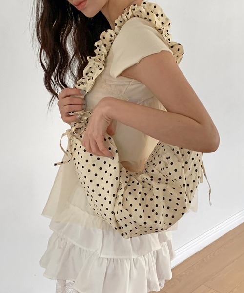 [ドットシャーリングバッグ] トレンドのくしゅくしゅショルダーバッグをご紹介します! ▼ ポイント - ドットとサイドリボンがポイント - サイドのリボンでショルダーの長さを調節可能♥ - 必要な物がしっかり入るサイズ ▼ ディテール MD's Pick! 2人のMDどちらもゲットしたサイドショルダーバッグです! サイドのリボンでショルダーの長さを調節ができ、 ショルダーバッグ/クロスバッグ2Wayで活用できます! かわいいドットの素材と可愛らしさをアップしてくれるサイドシャーリングポイント! 1つのバッグでトレンドコーデが完成します♥ ▼おすすめコーデ コーデによってショルダーバッグ、クロスバッグとしてお持ちください! モデル画像のコーデを参考にしてもGOOD! *ご覧のモニター環境や撮影環境に応じて実際 商品の色と異なって見える場合がございますので、ご了承ください。 *素材の特性を考慮して管理法留意事項を購入/着用する場合は必ず 確認お願いします。 【by muni:r とは】 "munir" は、イタリア語で "服を着る" を意味します。 韓国のファッションと日本のファッションの良さを一つにまとめて 大人カジュアルにちょっぴり甘い、1枚でどんなシチュエーションにも活用できる服がある 「私だけのシークレットクローゼット」がコンセプトです。 「より自分らしく、より自分を好きになる」体験をムニールは伝えたい。 20代前半から20代後半まで幅広く着ていただける女性のためのブランド by muni:r でございます。 ★商品お気に入り登録 [お気に入り登録] を押すと登録完了! お好きなアイテムとサイズのカラーを登録すると再入荷、販売のお知らせ等を受け取れます。 ★ブランドお気に入り登録 新商品、お買い得情報、クーポンなどをできるだけ早く通知を受け取れます。 - ブランドの最新情報はinstagram【@by__munir】でご確認いただけます!