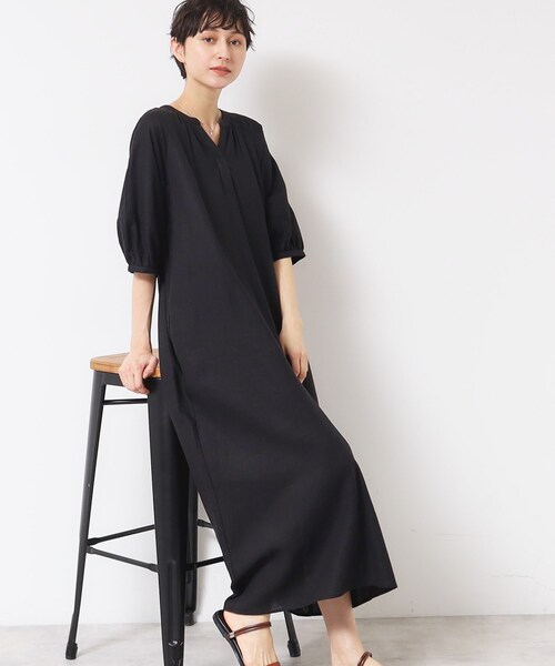 【デザインポイント】 スキッパーネックで襟元に清涼感のあるデザインのワンピース。 テントラインシルエットは体型をカバーでき、涼しさもある1枚です。 バルーンスリーブで二の腕カバーができるので、安心感があります。 【スタイリングポイント】 1枚で決まる夏のワンピースです。スニーカー・サンダルと相性が良いので、足元の変化でスタイリングが楽しめます。 【素材ポイント】 手触りの良いレーヨン混の麻素材です。 【仕様】 ・ポケット数:横×2 ・裏地なし ・本体と同系色のペチコート付き ※照明の関係により、実際よりも色味が違って見える場合があります。また、パソコン・スマートフォンなどの環境により、若干製品と画像のカラーが異なる場合もございます。 モデル情報:身長168cm B76 W58 H86 着用サイズ:02(M) 店舗へのお問い合わせ商品番号:F58-52025 ●製品寸法: 01(S):着丈123cm B104cm 裄丈54cm W116cm H126cm ペチスカートW58~66cm ペチスカートH88cm ペチスカート総丈51cm 02(M):着丈124cm B107cm 裄丈55cm W119cm H129cm ペチスカートW60~68cm ペチスカートH91cm ペチスカート総丈52cm 03(L):着丈125cm B110cm 裄丈56cm W122cm H132cm ペチスカートW62~70cm ペチスカートH94cm ペチスカート総丈53cm 備考: