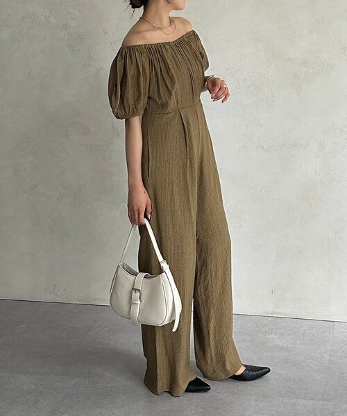 【2025SS】 リラクシーにきれいめスタイルを叶える 【POINT】 ・程よいゆるっと感でこなれた大人の可愛さ ・オフショルでヘルシーな肌見せスタイルも◎ ・スタイルアップ効果が期待できるシルエット ・涼しい素材が普段のおでかけやリゾートコーデにも 【STYLING】 ・1着でコーデが完成するので、小物やアクセを使って楽しめたり、 スニーカーを合わせてカジュアルな雰囲気も◎ ・髪をアップでまとめると、デコルテラインがきれいに見える すっきりとした女性らしい着こなしに仕上がります。 【アフターケア】 ・洗濯不可 ・漂白不可 ・タンブル乾燥処理不可 ・アイロン可(低温) ・ドライクリーニング可 ・ウェットクリーニング不可 ---------------------------------------------- 透け感:なし 裏地:あり 伸縮性:なし 光沢感:なし ---------------------------------------------- ※商品画像は着用イメージです。 光や角度により、実物と色味が異なる場合がございます。 また表示のサイズ感も実物とは若干異なる場合もございますので、 ご了承ください。 ※着用、お取り扱いの際は、商品についている品質表示と アテンションタグを必ずご確認ください。 ---------------------------------------------- 【Thevon】 自分を魅せる「ニュアンスファッション」 オトメからオトナに向かう女性へ旬なアイテムを提案 ---------------------------------------------- 気になるアイテムは【お気に入り登録】がおすすめ! ▽商品のお気に入り登録 完売カラーの再入荷やラスト1点の通知などを受け取ることができます。 ▽PALCLOSETでブランドをお気に入り登録 新商品やクーポン、セール情報をいち早く受け取ることができます。