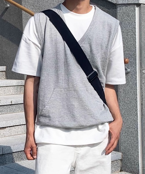 【NOWLE】Vネック プルオーバー スウェット ベスト シンプルながらも洗練されたデザインが魅力のVネック プルオーバー スウェット ベスト! 快適な着心地と機能性を兼ね備え、Tシャツやシャツとの重ね着で、いつものコーディネートにこなれ感をプラスします。 【素材】 肌触りの良いコットンと、耐久性・速乾性に優れたポリエステルをブレンドした混紡素材を採用しています。 柔らかな風合いながらも型崩れしにくく、日常使いに最適です。 適度な伸縮性もあり、動きやすさも確保しています。 【デザイン】 首元をすっきりと見せるVネックラインが特徴で、インナーを選ばず幅広いスタイルにマッチします。カジュアルになりすぎず、上品な印象を与えるため、大人のリラックススタイルにぴったりです。 フロントには、スマートフォンや小物の収納に便利なカンガルーポケットを配置し、デザインのアクセントにもなっています。さらに、裾にはドローコードが付いており、お好みのフィット感に調節可能です。 絞ってシルエットに変化をつけたり、そのままゆったりと着用したりと、スタイリングの幅が広がります。 【スタイリング】 TシャツやロンTの上に重ねるだけで、こなれたカジュアルスタイルが完成し、デニムやチノパンとの相性も抜群です。 シャツやポロシャツとのレイヤードもおすすめで、Vネックが首元をすっきりと見せ、ビジネスシーンでのカジュアルダウンや休日のきれいめスタイルにも活躍します。 スウェット素材とVネックのデザインは、スポーツウェアとの相性も良好で、ワークアウト後のリラックスウェアや、軽めのアクティビティにも最適です。 季節の変わり目にはアウターとして、肌寒い季節にはジャケットやパーカーのインナーとして、ロングシーズンにわたって着回しが可能です。 【NOWLE(ノウル)】 now+owlの造語で幸福の鳥owl(フクロウ)をモチーフにしたブランド名 "今"と"幸福"を大切にという想いを込めて立ち上げたセレクトブランドです。 【NOWLEの新着情報について】 ▼商品のお気に入り登録 完売カラーの再入荷通知や、ラスト1点の通知、セールの通知も受け取ることができます。 ▼ブランドのお気に入り登録 新商品や再入荷等、いち早く"NOWLE"のお得な情報を受け取ることができます。 ※こちらの商品の画像はサンプルを使用しているため、一部製品と仕様が異なる場合がございます。 ご覧のモニター環境や撮影環境により実際の商品と多少色味が異なって見える場合がございます。 この点をご了承の上、お買い求めください。ご理解の程よろしくお願いいたします。 Vネック,プルオーバー,スウェット,ベスト,タンクトップ,ノースリーブ,トップス,メンズ,カジュアル,スポーツ,レイヤード,重ね着,リラックス,ルームウェア,ストリート,アスレジャー,コットン,ポリエステル,混紡,快適,機能性,ポケット,ドローコード,ユニセックス,グレー,春,夏,秋,冬,オールシーズン,ファッション,ウェア CZ_0008