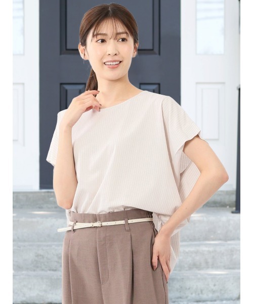 ■素材特徴 コットンにポリエステルを混紡した、ストライプ柄のジャガード素材を使用しています。さらっとした肌触りと薄手で軽い着心地が特徴です。 ■機能 【マシンウォッシャブル】洗濯機で洗えます。(要ネット・標準水流) ■デザイン 夏コーデのアクセントになる、クルーネックのプルオーバーです。爽やかなストライプ柄と肩が隠れるフレンチスリーブがポイント。Tシャツのような着軽さと上品なルックスを兼ね備えた一枚です。 ■シルエット 幅広い年代の方に着ていただけるベーシックなシルエットです。立体感のある仕様で体型をカバーしてくれます。 ■コーディネート 一枚で着るのはもちろん、ジャケットやジレ、カーディガンのインナーとしてもおすすめ。デニムと合わせてラフに、フレアースカートと合わせて甘めに、スマートなパンツ合わせで綺麗目にも決まります。オフィスでのかっちりコーデや休日の綺麗目カジュアル、どちらにもぴったりです。 フィット感:標準 シーズン:夏 展開カラー:ベージュ・青(ブルー) *アテンションタグ・洗濯ネームを御確認の上、着用又は取り扱い下さい。 *光の当たる場所や高温多湿になる場所での保管は避けて下さい。 *使用の有無に関わらず、経年劣化は進行いたしますのでご了承下さい。 *閲覧デバイス・環境により質感・色味に誤差が生じる場合がございます。 * ZOZOTOWN お買い物ガイド ・商品のお気に入り登録 ♡をクリックしましょう!完売カラーの再入荷通知や、ラスト1点の通知、セールの通知をお知らせします。 ・ブランドのお気に入り登録 新商品や再入荷など、いち早くお得な情報を受け取ることができます。 ・最短で翌日お届け 商品をカートに入れた後、注文内容の確認ページで「即日配送」を選択していただければ、最短でご注文した翌日にお届け致します。 (ZOZOTOWNお買いものガイドをご参照ください)
