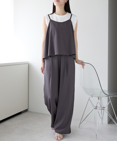 ◆◆着回し力NO.1の優秀セットアップ◆◆ トレンド感のあるミニマムなキャミとワイドパンツがセットをリリースしました。 デート、旅行、リゾート、フェスライブなどのシーンで着回しの広いパンツとキャミの2点セットです。 ◆Design◆ シンプルなキャミソールは裾がフレアシルエットになっており女性らしい印象に。 パンツはワイドシルエットでウエストはゴム仕様なのでリラックスして着用いただけます。 ◆Styling◆ そのままでもTシャツなどにコーディネイトがおすすめです。 セットアップはもちろん、それぞれ単品使いもしやすいアイテムですよ。 ♪洗濯:ドライクリーニング