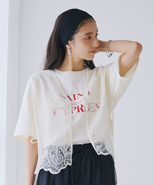 今年らしい着こなしが完成するトレンドアイテム カジュアルにも綺麗めにも合うレースベスト ーーー 【素材】 上品な刺繍レースを使用。 軽やかな印象でご着用いただけます。 【デザイン】 コーデを華やかにしてくれる刺繍レースがポイントのレースベスト。 上品な刺繍レースですがカジュアルなアイテムとも相性が良く、着こなしの幅が広がります。 サイドのリボンもポイントで、コーデのアクセントに。 透け感 :透ける(アイボリーで計測しています。) 伸縮性 :なし 生地の厚さ :普通 裏地 :なし ポケット :なし ジレ ベスト レース 刺繍 シアー ーーー 【スタイリング】 Tシャツやカットソー、シアートップスにレイヤードしていただくのがおすすめです。 タンクトップに重ねたヘルシーで大人な着こなしも素敵◎ デニムスタイルやワンピースともバランスよくご着用いただけます。