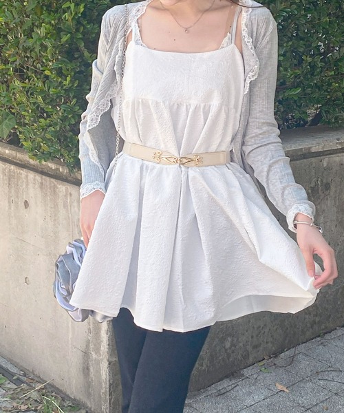 ♡デザイン♡ ジャガードのポコポコした立体感のある素材で 1枚で存在感のあるコーディネートが可能です。 ティアードで広がりがふんわりとし、 よりガーリーな雰囲気になるデザイン。 キャミソール部分はアジャスター付きで調整可能です。 ♡カラー展開♡ ホワイト、ブラック、ピンクの三色展開。 ベーシックな色味とガーリーな色味があるので お好きな色味で選べます! ♡生地♡ 本体:ポリエステル100%を使用。 少し凹凸感のある素材です。 ♡コーデ♡ シンプルに一枚で着てその上にカーディガンを着て 紫外線防止してコーデを組んだり、Tシャツやブラウスの上に レイヤードしてコーディネートを組むのがおすすめです♡ ~frunco shopping information~ ▼商品のお気に入り登録 完売カラーの再入荷通知入り登録 ♡をクリック!や、ラスト1点の通知、 セール商品の通知、をお知らせします。 ▼ブランドのお気に入り登録 新商品や再入荷など、fruncoのお得な情報を いち早く受け取ることができます。 ぜひご活用ください! 【商品画像について】 ・画像はサンプルです。 実際の商品と仕様、加工、サイズ、カラーが 若干異なる場合がございます。 ・生産時期により多少の色ブレが生じてしまう可能性が ございますことをご了承くださいませ。 ・撮影場所や照明の照射・角度、お使いのモニター環境により お色味が異なる場合がございます。 予めご了承ください。
