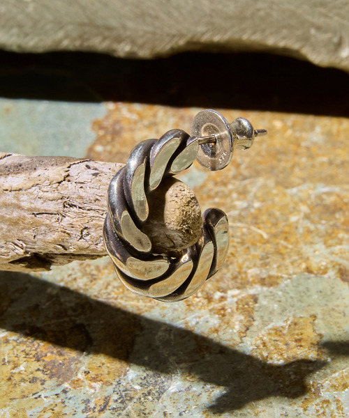 米津玄師さんの紅白歌合戦の衣装にも採用され、大変ご好評をいただきましたHRA042PRESS PIERCEをボリュームアップしたピアス。 HRA042が厚み2.2mmほどに対し、HRA062は3.7mmと1.7倍ほど。 印象としてはほぼ二倍ほどのインパクトがあります。 同じ作り方ですが編み込む線の径を大胆に太くし、さらにプレスする際にかける圧力を高めて、ギラリと光る平面部と正面から見た際のシルバーのうねる重厚感のコントラストを強調し、シルバーの長所を最大に生かすアップデートを施しました。 非常に力強いピアスです。 こちらはいぶしの加工を加えたタイプになります。 商品には、HARIM特製ケースが付属します。 クリスマスプレゼントや誕生日プレゼントなど、ギフトにもおススメのアイテムです。 両耳用のセットもございます。 ・PRESS PIERCE 2 / HRA062 SET OX 検索番号: 95219827 2タイプの展開となります。 ・HRA062 SINGLE GP (K18コーティング) 検索番号: 95219829 ・HRA062 SINGLE OX (いぶし加工) 検索番号: 95219830 HARIM アラビア語で『聖地』という意味を持つ『Haram(ハラーム)』と、 その語根で『守り秘められた』という意味をもつ『HRM』がブランド名の由来となってる、新鋭ドメスティックブランド"HARIM (ハリム)"[ageless,timeless,over the culture this is (not) jewelry]。 年齢や流行、文化に囚われることの無い普遍的なデザインと、ジュエリーでありながらジュエリーとしての機能を超え身に着けた瞬間から、今まで愛用してきたかのような愛着と、その永続性を約束する。それがHARIMなのです。 HARIMのデザインは、古き時代から普遍的に愛されるモチーフに現代のエッセンスを取り入れることで、懐かしさとともに新しさを感じさせてくれます。 デザインだけでなく、古より伝わる製作方法から再現することで、他には真似できない独特の雰囲気を醸し出しています。 「ジュエリーとは、大切な人よりも多くの時間を共にすごす物」。