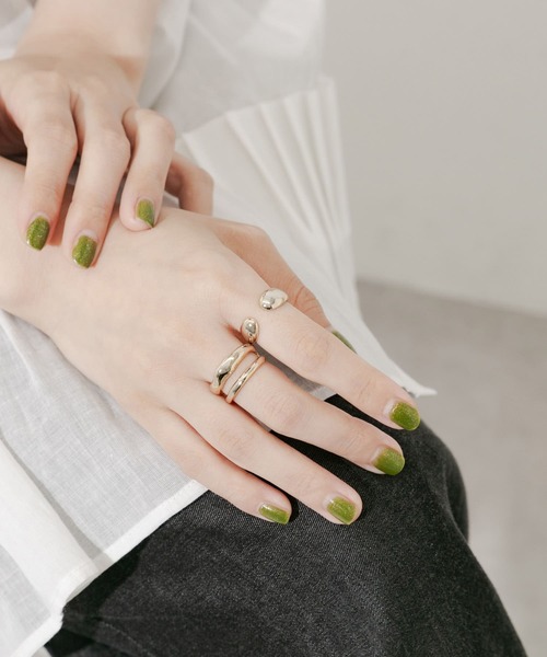 【こなれた指先に。ニュアンスデザインリング】 ●異なるデザインの2本セット ●上品なゴールドの輝き ●ニュアンス感ある絶妙なフォルム 異なるフォルムのゴールドリングが2点セットで登場。 ぷっくりとした絶妙な立体感がこなれた雰囲気の指先を演出。 単独でシンプルに、重ね付けでトレンド感を出すなど、その日の気分やスタイルに合わせて様々なアレンジをお楽しみいただけます。 【2025 Autumn/Winter】【25AW】 ※金属アレルギー症状が出にくいチタン、ニッケルフリー素材、ステンレス等を使用しています。すべての方にアレルギーが起こらないということではありませんので、万が一アレルギーの症状が出ましたら直ちに使用を中止してください。 ※メッキ製品(特に銀メッキ)は変色しやすいため、こまめなお手入れで防止してください。長期放置やスプレー香料などの同時使用は、特にお避けください。 ※メッキ製品は、アレルギー体質の方や体調が低下している方など、かぶれることがあります。肌に異常を感じた時はご使用をお止めいただき専門医にご相談ください。 ※アクセサリーは壊れやすいものです。取り扱いに注意していただき大切にご使用いただけるようお願い申し上げます。 サイズ : 13号, 11号(詳細商品画像の左から順に) 総重量 : 約9.5g ※商品画像は、光の当たり具合やパソコンなどの閲覧環境により、実際の色味と異なって見える場合がございます。予めご了承ください。 ※商品の色味の目安は、商品単体の画像をご参照ください。 ▼お気に入り登録のおすすめ▼ お気に入り登録商品は、マイページにて現在の価格情報や在庫状況の確認が可能です。 お買い物リストの管理に是非ご利用ください。 -