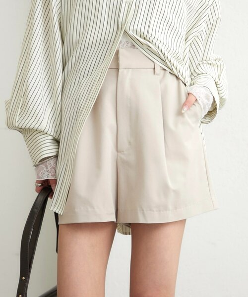 着回し力抜群♡シンプルショートパンツが登場!●デザイン・シンプルなデザインで様々なアイテムとの相性が抜群なシンプルショートパンツ。・タックが入っており、動きやすさやシルエットの美しさ魅力的です。洗練された印象になります。・裾に向けて広がりのあるデザインなので、脚が細く見える嬉しい効果も◎●素材ポリエステルを多く使用しており、シワになりにくく着心地も軽いです◎-----------------------------------------------------洗濯:40度限度 手洗い/石油系ドライクリーニング可アイロン:低温120℃まで スチームなし(あて布使用)タンブル乾燥:不可裏地:なし伸縮性:なし光沢感:なし生地の厚さ:普通------------------------------------------------------●スタイリング・フェミニンさのある甘めのトップスはもちろん、シンプルなトップスとも相性が◎・パンツと同色のトップスを合わせる際は、ベルトを付けると締まりのあるスタイルに♡・ロングブーツと合わせて目を惹くスタイリングに♡●おすすめスタイリングアイテムブークレタンクキャミSETnewシアーロングTシャツ●スタッフ着用コメント身長163cm 骨格ストレート サイズ2・タックが入っていることで、腰回りにゆとりも生まれ立ったり座ったりする際にも窮屈になりにくく履きやすいです。・アイボリー、ブラックと様々なアイテムと合わせやすいカラーなのも嬉しいです!身長155cm 骨格ウェーブ サイズ1・タックにより、肌と生地に空間ができ通気性もよくなるので、暑い日も快適に着用できました。・裾に向けて広がりのあるデザインなので、動きやすかったり脚が細く見えたりと嬉しいポイントがたくさんありました!------------------------------------------------------商品のお気に入り登録➡お気に入りアイテムの値下げ・再入荷・在庫1点などの通知を受け取ることができます。ブランドのお気に入り登録➡ 新商品や再入荷、セール、クーポン配布などお得な情報を受け取ることができます。※サイト上のカラー名と、お届け商品に記載されているカラー名が異なる場合がございます。※商品の色味は、撮影場所や光のあたり具合などにより色味が違って見える場合が御座います。また、お客様のお使いのPCのモニター環境などにより色味が違って見える場合が御座います。予めご了承の上ご注文下さい。※ご注文いただいた予約商品のお届け時期の確認は、注文履歴ページより行えます。------------------------------------------------------