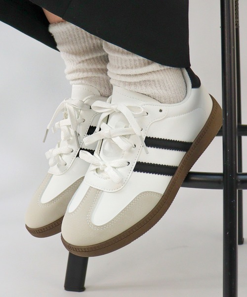 軽量 ベーシック ダブルライン スニーカー [素材・カラー] ●アッパーには、スエード素材、スムース素材を使用しており、質感が良く足になじみやすくなっております。 ●カラーは合わせやすい2色展開。 [形・特徴] ●この靴はつま先がラウンドの木型で作られており、ベーシックな形で幅広く合わせられます。 ●ジャーマントレーナーのダブルラインでかわいい絶妙なアイテム! ●旬のデニムやスラックス、スカートやバレエコアなど、コーディネートになじみやすくデイリー使いにおすすめです。 ●合わせやすいデザインとカラーリングで、色々なシーンで活躍してくれる一足です。 韓国ファッション/ストリート/低身長/身長アップ/スポーティー/カジュアル/シンプル/旅行/通勤/通学/普段使い/アウトドア/レザースニーカー/コートスニーカー/スポーツミックス/デニム/ウォッシュデニム/フレアパンツ/スラックス/ミニスカート/スリットスカート/デニムロングスカート/キャミワンピ―ス/ダウン/ナイロンパーカー/ブルゾン/トラックジャケット/トラックパンツ/ラインパンツ/スウェット/ハーフジップ/オフショルダー/レーストップス/ゲームシャツ/ロゴT/シアーシャツ/シアートップス/チュール/ビスチェ 【商品のお気に入り登録】 商品のお気に入り登録をすると、 完売カラーやサイズの再入荷通知や、 ラスト1点のリマインド通知、 セール情報などをいち早くお届けします! <商品のお気に入り登録方法> サイズ、カートに入れる横の「♡」をクリックしてください! 【ショップのお気に入り登録】 ショップをお気に入り登録すると 新商品の発売や再入荷、クーポン発行通知、 タイムセール情報など ショップのお得な情報をいち早くお届けします! ぜひ、ご登録ください! <ショップのお気に入り登録方法> ショップ名をクリックし、「♡お気に入りショップに追加」をクリックしてください! 3717