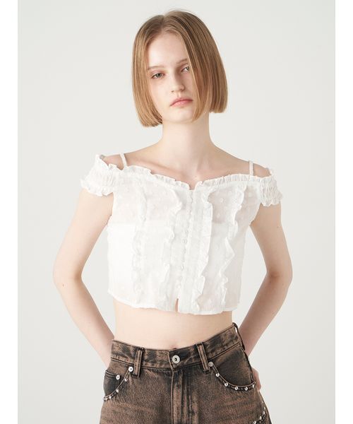 端々に細巾のフリルを施したコンパクトなシルエットのブラウス。コルセットの様なパネル切り替えデザインにすることで、トレンド感のあるアイテムに仕上げました。前身頃は釦開きにし、後ろ身頃にはゴムを入れることで着脱しやすい様に工夫しております。素材はシアー感のある綿素材でフェミニンに仕上げた単色と、モード感のあるチェック柄とで雰囲気の異なる色展開をご用意しております。透け感;なし裏地;なし伸縮性;ややあり光沢感;なし生地の厚さ;薄手※照明の関係により、実際よりも色味が違って見える場合があります。またパソコン・スマートフォンなどの環境により、若干製品と画像のカラーが異なる場合もございます。予めご了承ください。商品の色味は、商品単品画像をご参照下さい。 ※商品画像はサンプルのため、色味やサイズ等の仕様に変更がある場合がございますので、予めご了承ください。