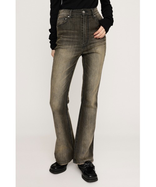 ■POINT:生地のヨコ糸にリサイクルPUのROICA®EFを使用したジーンズ。ストレッチが効いているので長時間ストレスなく着用していただけます。■DETAIL:ウエストから太ももにかけてはタイトで、裾にかけて自然に広がるフレアシルエットと、ハイウエストなのでウエストの位置が高くなるため、脚長効果やスタイルアップが期待できます。M/BLK…太もものアタリとヒゲこすりを強めに施し、オーバーダイ加工をしているので絶妙なヴィンテージライクなカラーに仕上げました。L/BLU…太もものアタリとヒゲこすりをさりげなく施し、洗いをかけた後にオーバーダイ加工をしているのでライトなカラーですが深みのある印象に仕上げました。■STYLING:ブラウスはもちろん、綺麗なシルエットなのでカジュアルなカットソーとの相性も抜群です。ハイウエストなので、クロップド丈からオーバーサイズまで合わせやすいアイテムです。■FABRIC/MATERIAL:ROICA®EF…従来破棄されていた不用糸を原料として再利用し、新しい糸に生まれ変わらせたサスティナブルなリサイクルストレッチファイバー。■透け感:なし■光沢感:なし■伸縮性:あり■裏 地:なし本品は、素材特性上以下の点にご注意ください。・着用や洗濯につれ退色し、独特な色変化が生じます。・雨や汗等の湿った状態、着用や洗濯、クリーニングによって他の衣類、雑貨、家具等に色落ちします。・白・淡色との組み合わせは避けて下さい。・淡色は光(紫外線)に弱いため変色する事があります。直射日光や蛍光灯の光に長時間さらさないようご注意下さい。・クラッシュやダメージ加工の製品は、着用や洗濯につれて加工箇所の広がりが生じる事がありますがご了承下さい。・着用や洗濯につれ多少の縮みやネジレ(製品がねじれて見える状態)が生じる事があります。[注意事項]※画像の商品はサンプルです。実際の商品と仕様、加工が若干異なる場合があります。※画像の商品は光の照射や角度、お使いのモニター環境により、実物と色味が異なる場合がございます。※着用、お取り扱いの際は、アテンションタグをご確認ください。※一部予約商品につきましては生産上の都合によりお届け予定日や店頭発売と前後する場合もございます。※追加生産商品は、一部の店舗、通販で販売中の場合がございます。予めご了承下さい。【SLY/スライ】「Casual」「Girly」「Mode」をベースに発信する、ディテールへのこだわりが詰まった、どこか必ず女性らしさを感じるアーバンスタイル。 さまざまなエッセンスをミックスした、時代の空気を体現するコレクションを展開。 ▼商品のお気に入り登録 お気に入りアイテムの値下げ・再入荷・在庫5点などの通知を受け取ることができます。 ▼ブランドのお気に入り 登録新商品や再入荷、セール、クーポン配布などお得な情報を受け取ることができます。※こちらの商品はSLY独自の採寸方法となっています。本サイトのサイズガイドと採寸方法が異なる場合がありますのでご了承ください。