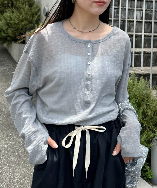 ゆるっと感がおしゃれ見え♩ヘルシーな透け感が魅力の大人シアーTEE■デザイン程よい透け感がヘルシーかつ女性らしい印象に。ヘンリーネックデザインが、大人の抜け感を演出してくれます!袖部分には指穴があり、絶妙なルーズ感がおしゃれ見え間違いなし♩ゆとりのあるサイズ感なので、腰回りもしっかりカバーしてくれるのも嬉しいポイント◎サイドスリットを施し、インでもアウトでも着こなしやすいです!合わせるアイテム次第で、ロングシーズン着回しができる万能アイテムです。■スタイリングベーシックなシルエットなので、様々なボトムと相性抜群♡2枚重ねるレイヤードスタイリングもおすすめです!■お手入れ方法洗濯:液温は40 ℃を限度とし、洗濯機で弱い洗濯ができるアイロン:底面温度120 ℃を限度としてアイロン仕上げができるタンブル乾燥:不可・・・・・・・・・・・・・・・・・・・・・・透け感:あり裏地:なし伸縮性:あり光沢感:なし生地の厚さ:普通・・・・・・・・・・・・・・・・・・・・・・▼気になる商品をお気に入り登録ハートをクリックして《お気に入り登録》がオススメです!※画像の商品はサンプルを使用しております。実際の商品と若干の仕様が変更になる場合がございますので、予めご了承の上ご注文くださいますようお願いいたします※屋外の光や照明の当たり具合で、実際の商品の色味とカラー別画像の色味に若干の違いが発生する場合がございます。詳細画像と併せてご確認の上、ご注文いただきますようお願い致します。※独自のタイムセールなどの施策により、実店舗と価格差が発生する場合がございます。※実際の店舗在庫につきましては、各店舗に直接お問い合わせください。