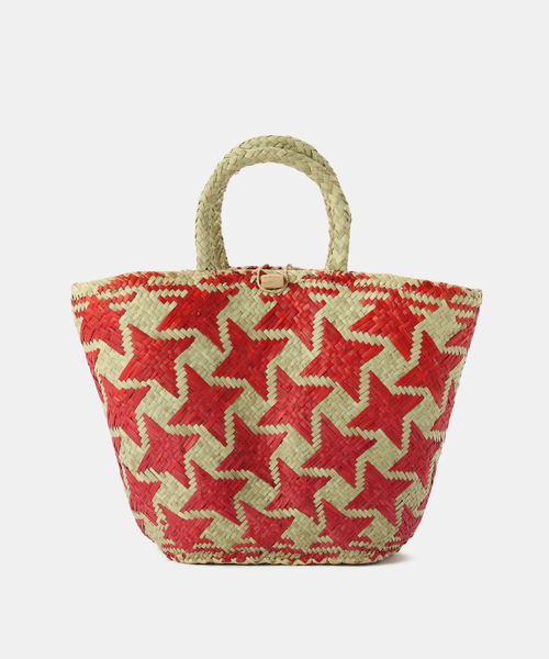 先方品番:KD25912(ストローかご 星柄)弊社カラー:メーカーカラーレッド(060):50/アカマダガスカルでストローをカラフルな星柄のバスケットに編み上げました。口に留め具が付いているので安心。ひとつひとつ丁寧に手作業で編んでいます。●シリーズ商品品番:25092710000710 AFRICAN SQUARE/アフリカンスクエア 星柄 ストローカゴバッグ M品番:25092710000810 AFRICAN SQUARE/アフリカンスクエア 星柄 ストローカゴバッグ S【AFRICAN SQUARE/アフリカンスクエア】素材・デザインのオリジナリティに加え、アフリカンハンドメイド製品ならではの「味わい」が特徴。アフリカ各地の優れた伝統工芸品をご紹介するだけではなく、アフリカンデザインと、日本のトレンドをミックスした、商品を提供しています。※取り扱いについては、商品についている品質表示でご確認ください。・100%植物製のかごです。・かたちは霧吹きなどで少し湿らせて整えることが可能です。・保管する際は、変色しやすくなりますので直射日光や強い照明が近くに当たる場所などはお避け下さい。また、湿気はカビの原因になりますのでお気を付け下さい。・色落ち:汗や雨などによる水濡れによって色落ち、型崩れの恐れがあります。製品のお取り扱いに十分にご注意ください。※こちらの商品は、B.C STOCKでの取り扱いになります。 直接店舗へお問い合わせの際はB.C STOCK店舗へお願い致します。※照明の関係により、実際よりも色味が違って見える場合があります。またパソコン・スマートフォンなどの環境により、若干製品と画像のカラーが異なる場合もございます。※商品の色味は、商品アップ画像をご参照ください。
