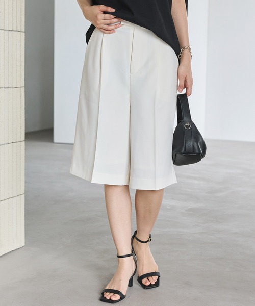 OTO × LAVEANGE プラスサイズ インフルエンサーOTOさん (@otoayabe)とのコラボアイテム 【 OTOさん コメント 】 丈感と裾幅にこだわった、子どもっぽくならず大人コーデに取り入れられるハーフパンツです。 気取らないのに洒落見えするラフコーデが完成します!秋口のロングブーツ合わせにもおすすめ! ■デザイン ラフすぎず大人も穿きやすい、きれいめショートパンツ。 縦ラインを強調するセンタープレス入りの上品なデザインで、ラフになりすぎない大人なバランスに。脚をすっきりと見せてくれる美シルエットが魅力です。 後ろウエストゴム仕様で楽な履き心地もポイントです。 大人も挑戦しやすいベーシックなオフホワイト、ブラックの2色展開。 マルチサイズ展開/大きいサイズ対応(M/LL/3L/4L/5L) ■素材 さらっとした肌触りの素材感。 程よいハリ感でシルエットを美しくキープ。 お手入れ方法:手洗い可 ■コーディネート Tシャツやシャツを合わせてカジュアルにも、ブラウスやジャケットを合わせてきれいめにも着こなせます。 Tシャツやブラウスにちょうどいいきちんと感をコーディネートにプラスしてくれます。 --------------------------------------- 透け感:なし/ややあり(オフホワイトのみ) 裏地:あり 伸縮性:なし 生地の厚さ:普通 --------------------------------------- ■商品注意事項■ ※商品画像は、光の当たり具合やパソコンなどの閲覧環境により、実際の色味と異なって見える場合がございます。予めご了承ください。 ※末永く愛用頂く為に、アテンションタグ・洗濯ネームを必ずご確認の上、着用又はお取り扱い下さい。 ※生産時期により色味が多少異なる場合がございます。予めご了承ください。