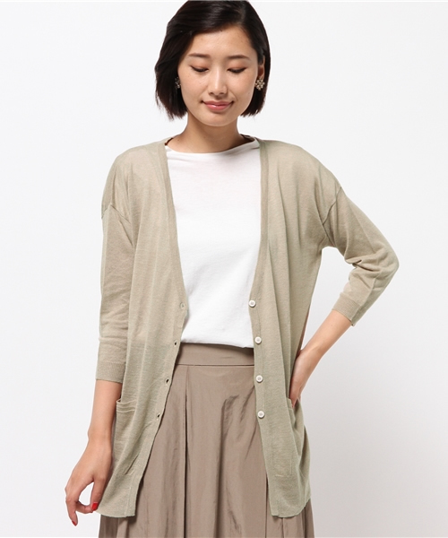 強撚してシャリ感を出した麻×レーヨン素材のカーディガンです。肌触りがさらっとしていて清涼感があり、これからの季節に最適な着心地。落ち感のある素材を使っているので、羽織った時のラインもきれいです。やや長めに設定した着丈が今年らしい程よいゆる感をプラスするポイント。