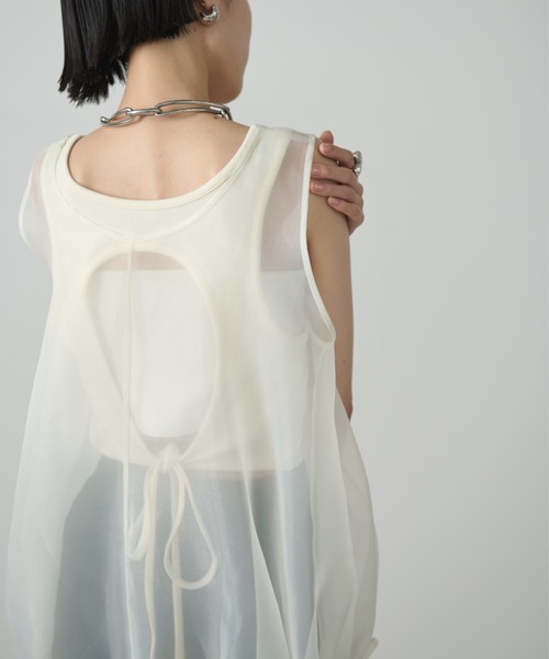 ー ディテール ー今季トレンドのバルーンシルエットにオーガンジー素材を落とし込み、甘さを抑えたモードな印象に。シンプルなスタイリングにレイヤードするだけで格上げされたコーディネートに仕上がります。※インナーは付属しておりません【色味に関しての注意事項】商品画像は、ストロボなど撮影機器の使用や光の当たり具合、お使いのスマートフォンやパソコンなどの閲覧環境により、実際の色味と異なって見える場合がございます。予めご了承ください。【SNS動画掲載アイテム】@aic_official上記の公式インスタグラムアカウントにて着回し動画を掲載しております。是非ご覧くださいませ。★お取り扱い注意事項★下記をご確認いただきご了承の上、ご購入ください。・こちらの商品はデザインを重視したデリケートな素材を使用しているため、引っ掛かりなどで糸がつりやすくなっております。・着用中の摩擦などにより、ピリング(毛玉)が生じる場合があります。・洗濯の際は色落ちしますので単独で洗い、湿気を含んだ状態や水につけたままで放置しないでください。・濃色の製品は、摩擦や汗、雨などで濡れると、ほかの衣料に色移りする場合がございますので、充分ご注意ください。・商品の写真はサンプル品を撮影している為、実際の商品とは仕様や加工、加工によるダメージ、サイズ等が若干異なる場合もございます。・初回販売分と生産時期の異なる商品は、色味や加工等若干異なる場合がございます。・システムの都合上下げ札の税込み価格表記が商品ページの税込み価格と1円ずれている場合がございます。・掲載画像の商品の色味は、屋外や屋内の光の照射や角度により実物と色味が異なる場合がございます。また表示のサイズ感と実物は若干異なる場合もございますので、 ・着用、お取り扱いの際は、商品についている品質表示とアテンションタグを必ずご確認下さい。