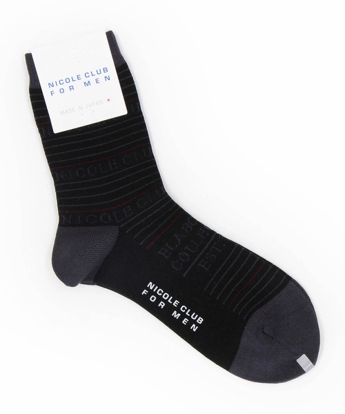 ■デザイン ボーダー×ロゴデザインのクルー丈ソックス。国内工場で編み上げた上質な仕上がりの日本製ソックスです。ロゴとライン部分を配色にしたメリハリのあるデザインが特徴です。甲部分にもジャカードロゴを入れて一層オリジナリティを高めました。パンツの裾口からデザインを少し覗かせてのスタイリングも楽しめます。ブランドネーム入りの口紙付き包装なので、ちょっとしたギフトにもおすすめです。 ■サイズ 25-27cm対応のフリーサイズです。 ■素材 毛羽立ちの少ないなめらかな糸を使用しています。 ■注意点 ・風合い保持のため、裏返しての洗濯をお勧めします。 ・デザイン上、着用や洗濯を繰り返すことで糸端の飛び出しが起こることがございます。予めご了承ください。