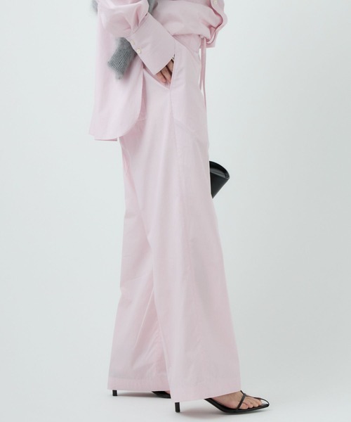 2025 PRE FALL COLLECTION ーーー パジャマの様にラフに着用出来るパンツ -design- ストレートでセンタープレスが入っているすっきりシルエットのパンツ。 ウエストはドロストになっているので、サイズ調整が可能です。 パジャマパンツの様にラフに着用出来るイメージで作りましたが、足元はヒールを履くなど少し大人っぽくまとめるとバランスよくデイリーに着用することができます。 ▼同素材のシャツはこちら▼ #210819 ガールフレンドシャツ -how to care- こちらの商品は、洗濯機でのお洗濯が可能です。 ーーー -fabric- 超長綿のコンパクト糸を使用。 繊維長が長く油分が多く含まれているため、シルクを思わせるような自然な光沢と柔らかく滑らかな質感が特徴です。 120/2の細番手を使用し高密度に織り上げているため、糸と糸の隙間が少なく、きめ細やかで発色の優れた生地となっています。 ********************* 透け感:やや透ける(ピンクストライプ(25)で計測しています。) 伸縮性:なし(ピンクストライプ(25)で計測しています。) 生地の厚さ:普通(ピンクストライプ(25)で計測しています。) 裏地:なし ※こちらは参考情報となります。カラーにより多少の誤差がございます。 ********************* 【Chaos(カオス)】 “カオス”の時代にあっても、自由かつインディペンデントな感性を大切にする大人の女性たちへ。素材やディティールにこだわったオリジナルと国内外で買い付けたユニークかつアーティな感覚のセレクトをミックスした発信をしています。 “大人の為の上質な日常着” For independent, free-spirited women navigating the “Chaos” of our time. Our original items are crafted to the finest detail with carefully selected materials. We also offer the most unique and artistic pieces collected from Japan and the world. “Fine clothes for the Modern Woman” ※商品の取り扱い方法につきましては、タグ等に記載されている「取り扱い上の注意」「洗濯表示」をご確認ください。 ※屋外での撮影画像は、光の当たり具合で色味が違って見える場合があります。あらかじめご了承ください。なお商品の色味は、スタジオ撮影の画像をご参照ください。 ....................≪INFORMATION≫...................... ▼商品のお気に入り登録をおすすめします▼ ♡をクリック!完売カラーの再入荷や、ラスト1点の通知、セールの際の通知を受ける事ができます。 ▼ ブランドのお気に入り登録 ▼ 新商品や再入荷など、ブランドのお得な情報をいち早く受ける事が出来ます。 こちらもぜひご登録ください。